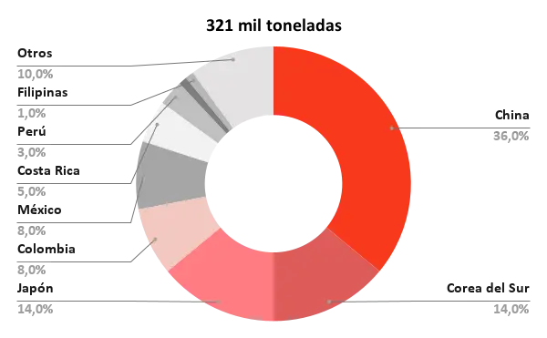 | 4 Tailandia | 1.250 | 1.275 | 2% |